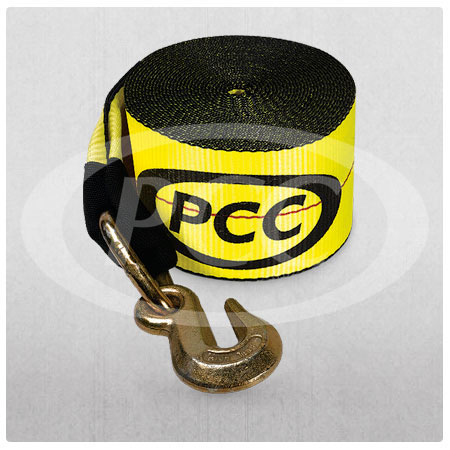 26XX-FH2" Yellow Winch Strap w/ Flat Hook. Various Lengths Available